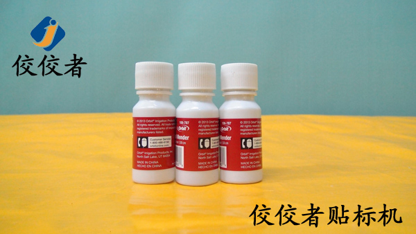 (上圖)接著展示的是剝離的標(biāo)簽正好貼在輸送中的小圓瓶上,同時(shí)即將經(jīng)過一端正在運(yùn)行的覆標(biāo)海棉通道,覆標(biāo)完成貼標(biāo)過程看似只有一秒鐘的時(shí)間,在這個(gè)時(shí)間中,機(jī)器進(jìn)行了一系列的工作:測物電眼檢測到小圓瓶時(shí),回饋一個(gè)信號給PLC,PLC再發(fā)出出標(biāo)信號,標(biāo)簽繼續(xù)剝離時(shí)貼在經(jīng)過的小圓瓶上,小圓瓶再經(jīng)過覆標(biāo)機(jī)構(gòu).至此,貼標(biāo)過程就已經(jīng)完成了. (操作過程:放產(chǎn)品—>分瓶(設(shè)備自動(dòng)實(shí)現(xiàn))—>貼標(biāo)并覆標(biāo)(設(shè)備自動(dòng)實(shí)現(xiàn))—>貼標(biāo)完成。)下圖是貼好標(biāo)簽的產(chǎn)品: