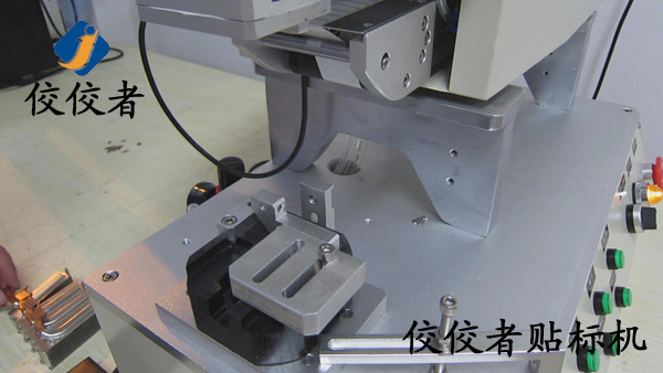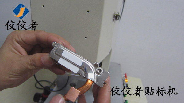 因?yàn)檫@款產(chǎn)品需要貼兩張標(biāo)簽。那么我們首先在散熱器上面貼上一張標(biāo)簽。當(dāng)我們貼好一張標(biāo)簽之后,再貼另外一張標(biāo)簽的時(shí)候,我們需要再一次調(diào)整模具的位置來實(shí)現(xiàn)另外一張標(biāo)簽的貼標(biāo)。所以我們建議客戶在同一個(gè)產(chǎn)品上面貼兩張標(biāo)簽的時(shí)候,盡力做到一張一張的批量貼標(biāo)。這樣可以有效增加生產(chǎn)率。
