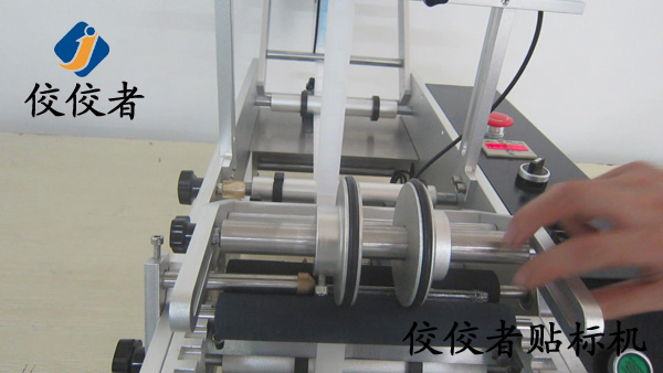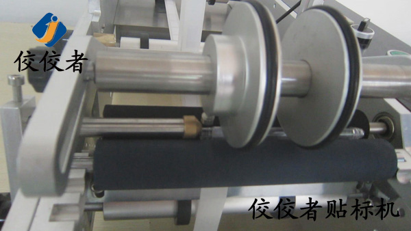 接著踩動腳踏開關(guān),設(shè)備出標(biāo),標(biāo)簽粘在產(chǎn)品上后通過兩個覆標(biāo)滾筒的轉(zhuǎn)動將標(biāo)簽均勻平整的覆在產(chǎn)品上,如下圖: