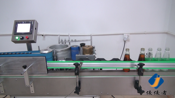 將瓶子放到上糊貼標(biāo)機的傳送帶上,按顯示屏上的開始按鈕,機器便開始工作了,瓶子排列在傳送帶上,由于后面貼標(biāo)位置的出標(biāo)是有一定頻率的,人工估算又非常不準(zhǔn)確,那么如何才能配合這個出標(biāo)頻率呢?請先看下圖: